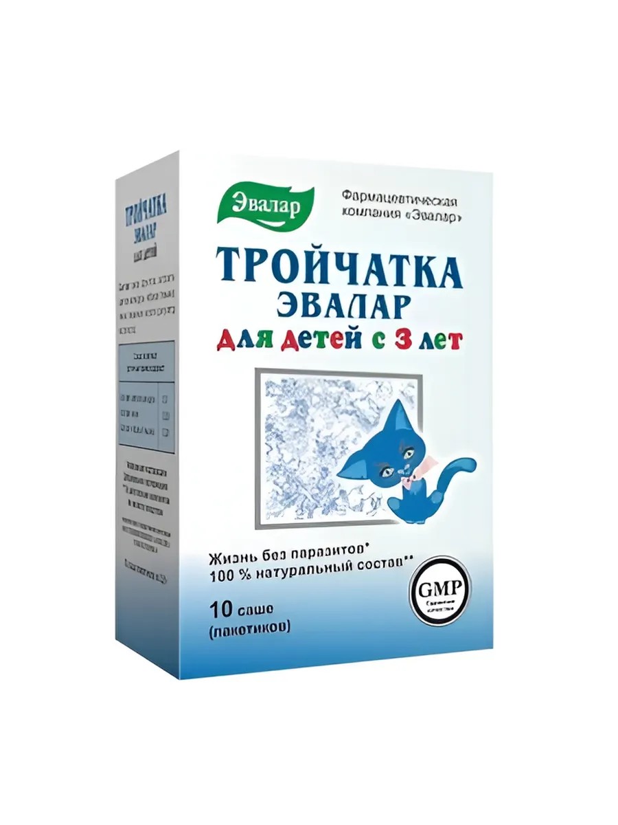 Evalar's Troichatka for Children is a specially formulated herbal complex of three herbal extracts that creates an unfavorable environment for parasites. The complex has a mild choleretic and choleretic effect, which helps maintain normal gastrointestinal function in children and eliminate both parasites and their waste products from the body. All components of the complex contain herbal bitters, creating an unfavorable environment for parasites.