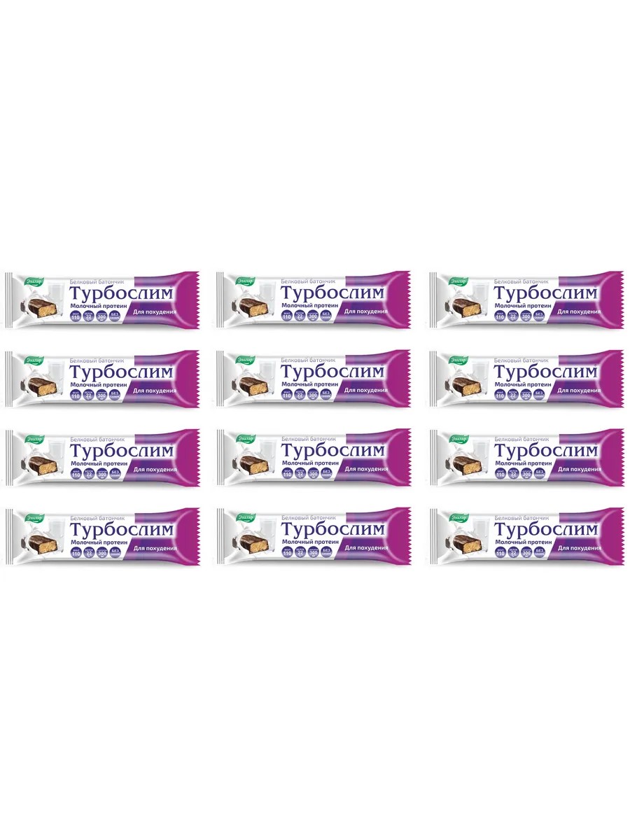 Когда Вы на диете, кажется, что все вокруг только и делают, что лакомятся чем-нибудь вкусным. Но теперь и вы можете позволить себе удовольствие! Бросить диету? Нет! Побалуйте себя диетическим белковым батончиком Турбослим.Он вкусный, но низкокалорийный – всего 110 ккал! Он полезный, потому что белковый. И, наконец, он жиросжигающий, потому что содержит L-карнитин и другие жиросжигающие компоненты. И при всех перечисленных достоинствах батончик Турбослим – это нежный сливочный вкус и аппетитная шоколадная глазурь!Батончик Турбослим прекрасно впишется в вашу диету. Вы можете использовать его в качестве диетического перекуса без лишних калорий. Попробуйте батончик Турбослим и худейте с удовольствием!Белковый батончик для похудения Турбослим: Надолго обеспечивает чувство сытости Придает энергию Способствует сжиганию жиров Снижает аппетит Батончиков много, а для похудения один!Как работают ингредиенты?Концентрат сывороточного белка. Белки составляют наиболее значительную часть нашего тела. Они служат единственным источником аминокислот и обеспечения равновесия процессов их синтеза и распада. Белки активно участвуют в анаболических процессах и являются ключевым элементом в строительстве мышечных клеток. Белок молочной сыворотки является наиболее легкоусвояемым и одним из самых ценных белков.l-карнитин относится к витаминоподобным веществам, повышает проницаемость клеточных мембран для жирных кислот. С началом приема карнитина начинается стойкая потеря жировой ткани, при этом резко повышается эффективность окисления жиров в организме, поскольку жирные кислоты дают уже не токсичные свободные радикалы, а энергию. Также l-карнитин повышает физическую выносливость, борется с переутомлением, повышает иммунитет.Хром пиколинат. Хром способствует снижению веса, наращиванию мышечной ткани, т.к. играет важную роль в транспортировке глюкозы в клетки и преобразовании ее в энергию.