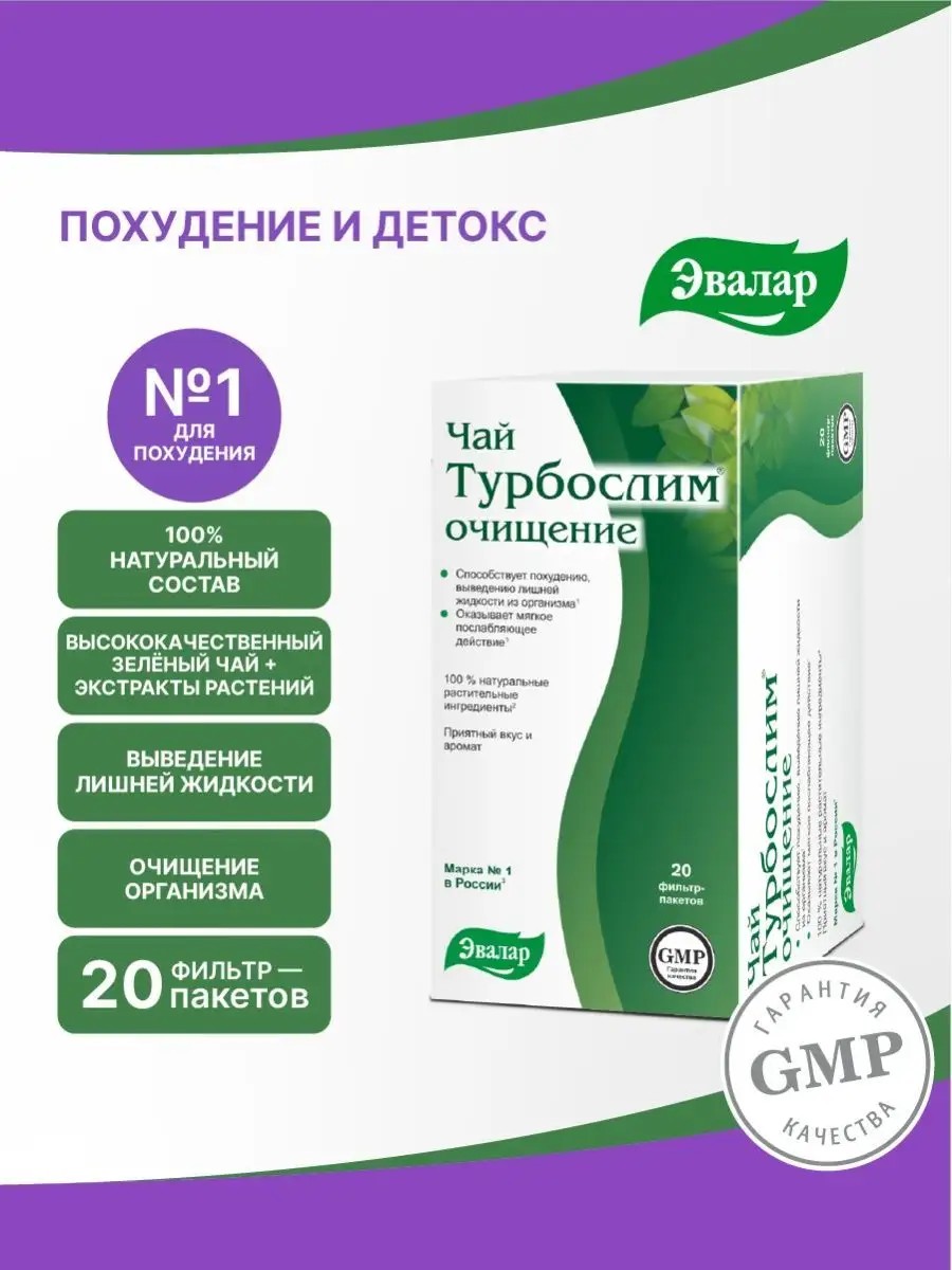 Эвалар Турбослим Чай Очищение, похудение и детокс, 20 пакетиков