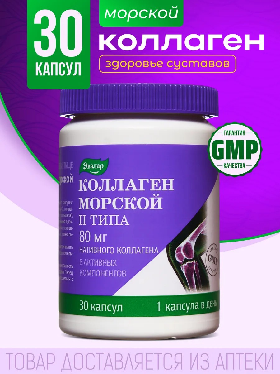 Коллаген морской 2 типа в капсулах — инновационный продукт компании «Эвалар», который содержит нативный коллагеновый белок из глубоководного кальмара и еще семь компонентов, необходимых для поддержания здоровья и молодости суставов.