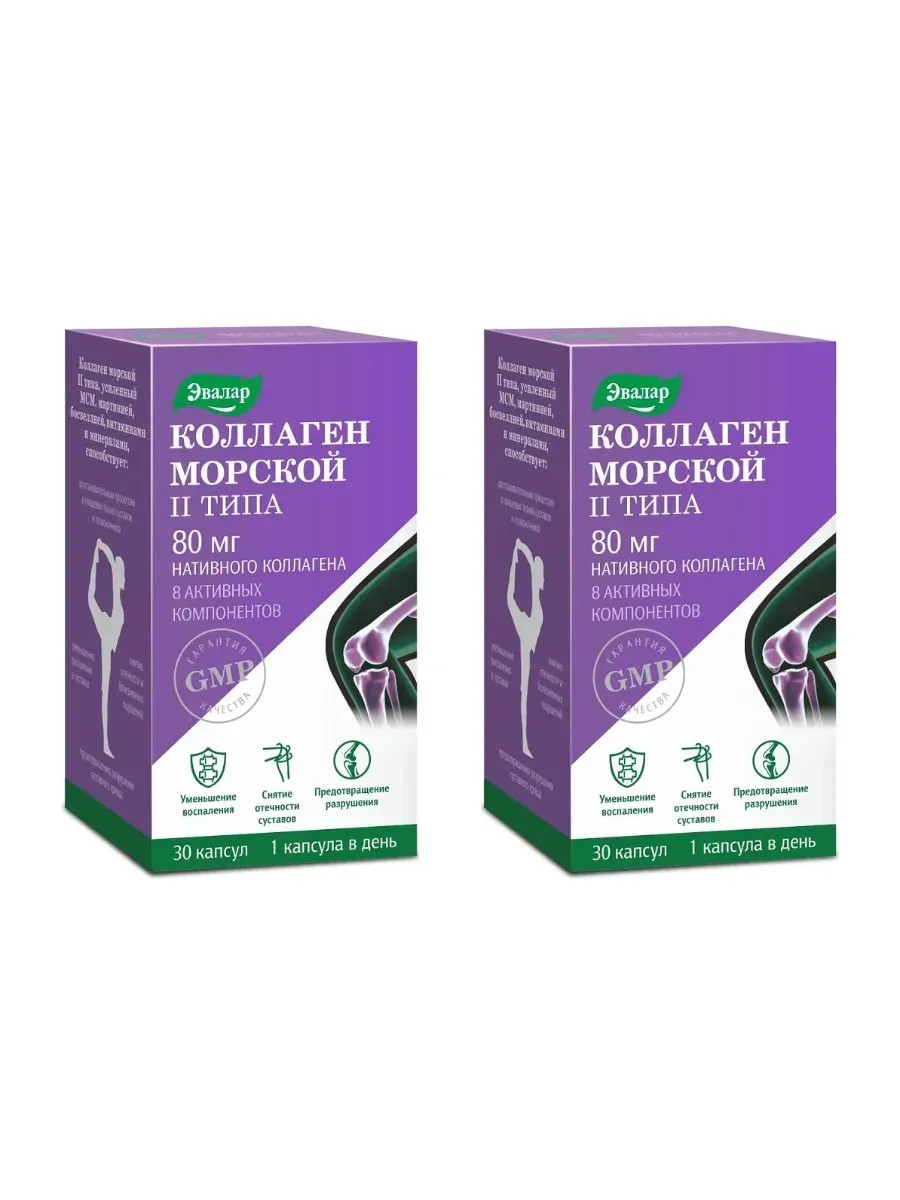 Эвалар Коллаген морской II типа, 30 капсул по 0,65 г х 2 уп