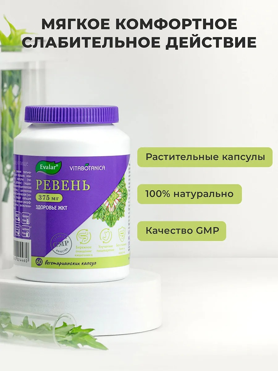 ВитаБотаника Ревень Эвалар — натуральное послабляющее средство для комфортного очищения кишечника, организма и нормализации работы жкт.
