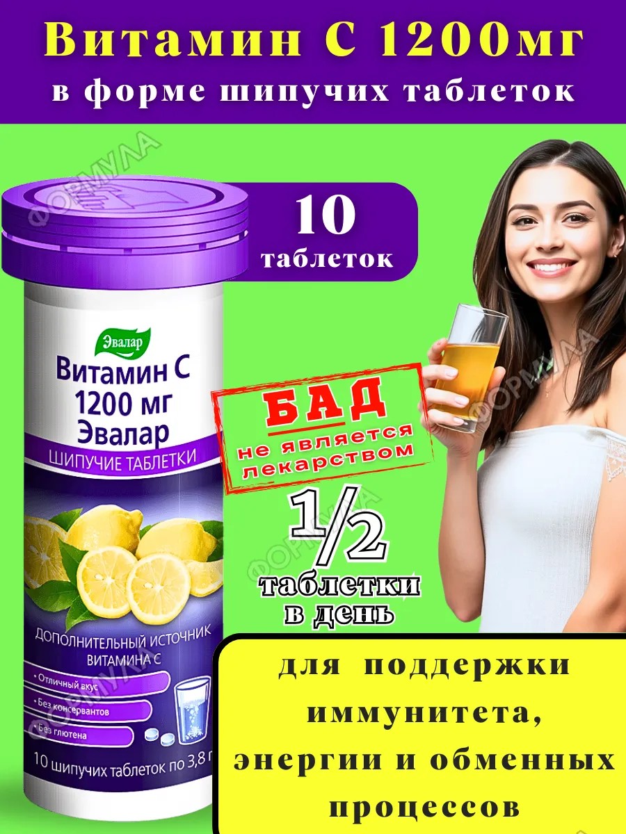 Эвалар Витамин С 1200мг шипучий напиток для иммунитета 10таб*1уп
