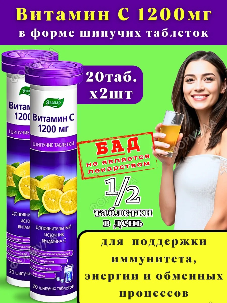 Эвалар Витамин С 1200мг шипучий напиток для иммунитета 20таб*2уп