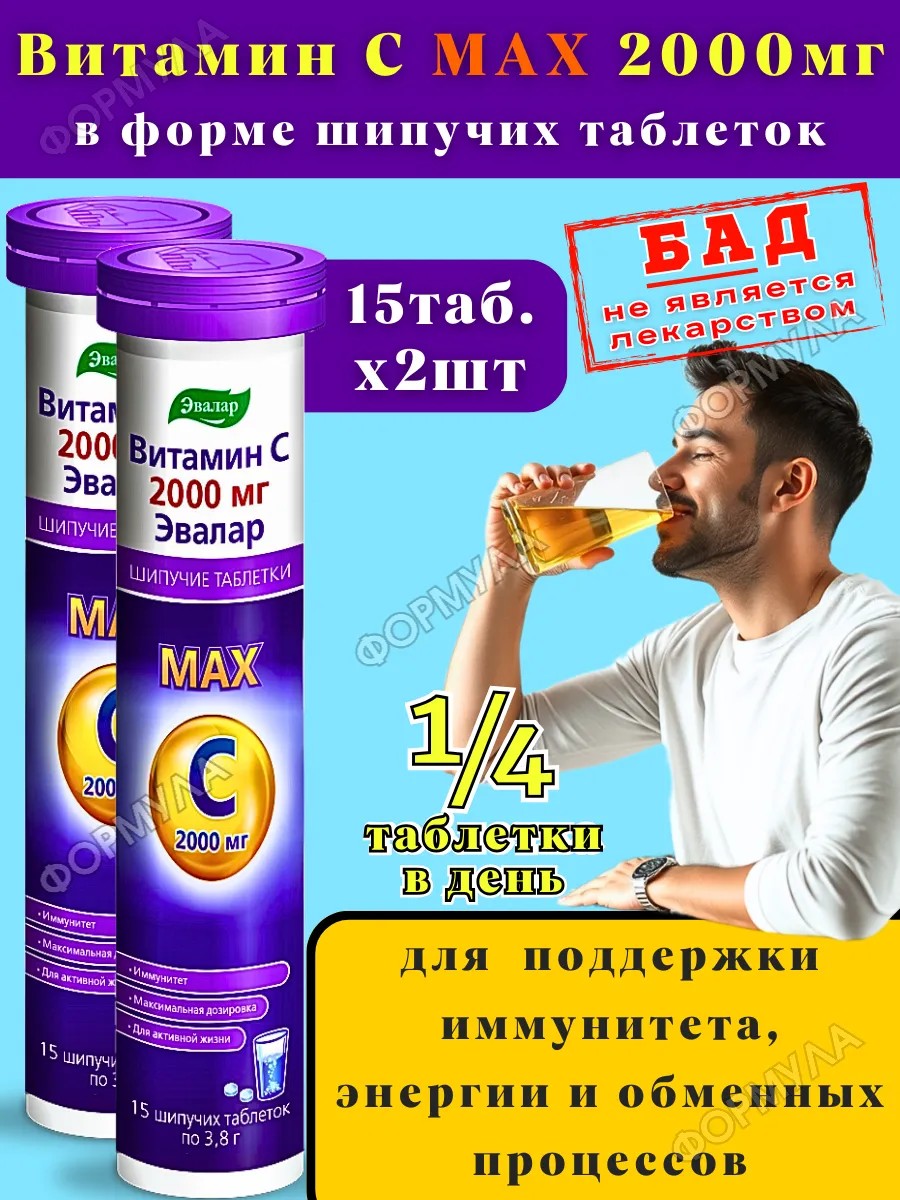 Витамин С Эвалар 2000 мг шипучие таблетки, биологически активная добавка, источник витамина С, цитрусовый вкус, поддержка защитных сил организма, активный образ жизни, энергия и жизненный тонус — всё это объединяет данный продукт, который выбирают покупатели для ежедневного рациона.
