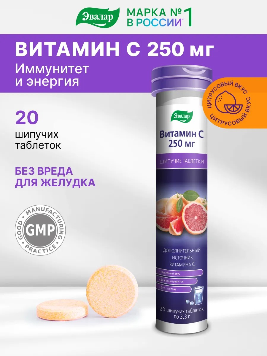 Эвалар Витамин С 250 мг, 20 шипучих таблеток для иммунитета