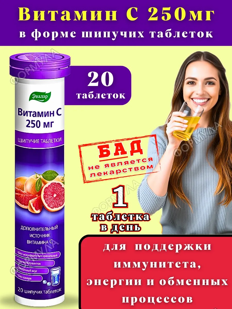Эвалар Витамин С 250мг шипучий напиток для иммунитета 20таб*1уп