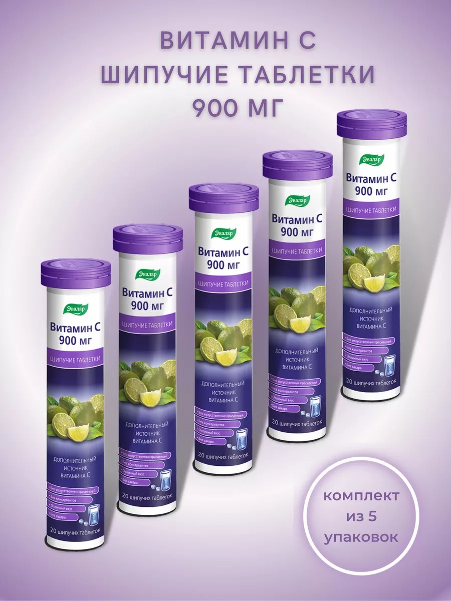 | Полное наименование товара | Эвалар Витамин C 900 мг шипучие таблетки, 20 шт. |
