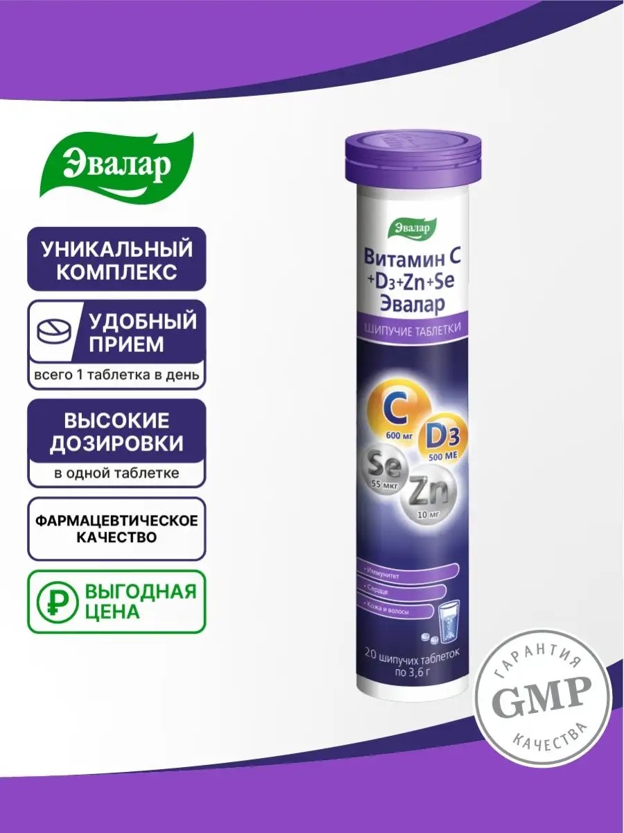 Эвалар Витамин С+D+цинк+селен, 20 шт