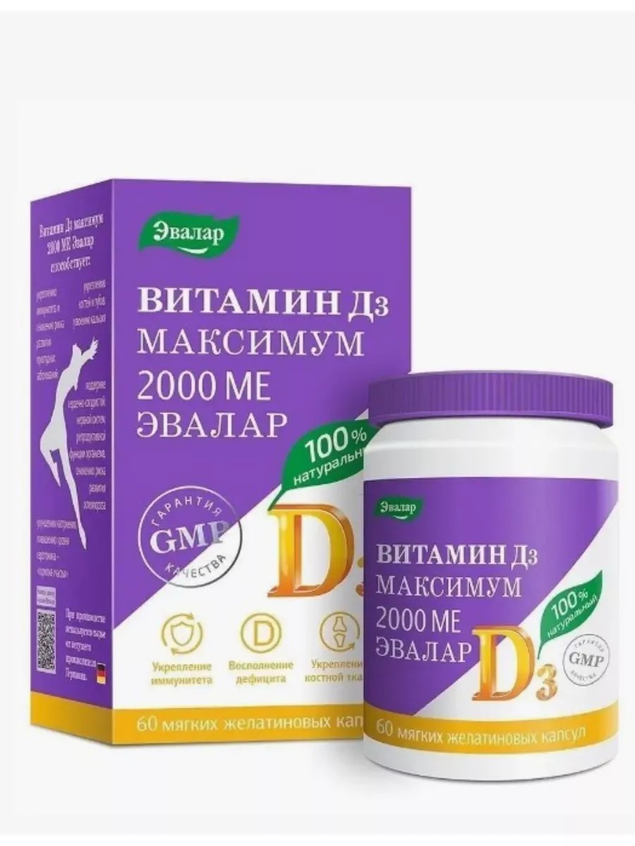 Витамин D3 максимум 2000 МЕ от компании- это биологически активная добавка к пище, предназначенная для поддержания здоровья и укрепления иммунной системы. Капсулы содержат высокую дозу витамина D3 (2000 МЕ), который играет важную роль в метаболизме кальция и фосфора, поддерживает здоровье костей и зубов, а также улучшает усвоение других витаминов и минералов. Препарат рекомендуется для профилактики остеопороза, повышения устойчивости к инфекциям и заболеваниям, а также для поддержки нормального функционирования нервной системы. Капсулы удобны в использовании и просты в дозировке - одну капсулу необходимо принимать ежедневно после еды. Препарат не содержит ГМО и искусственных красителей, что делает его максимально безопасным и эффективным для использования. Он подходит для взрослых и может быть использован в качестве профилактического средства для поддержания здоровья. Взрослым - по 1 капсуле 1 раз в день во время еды.