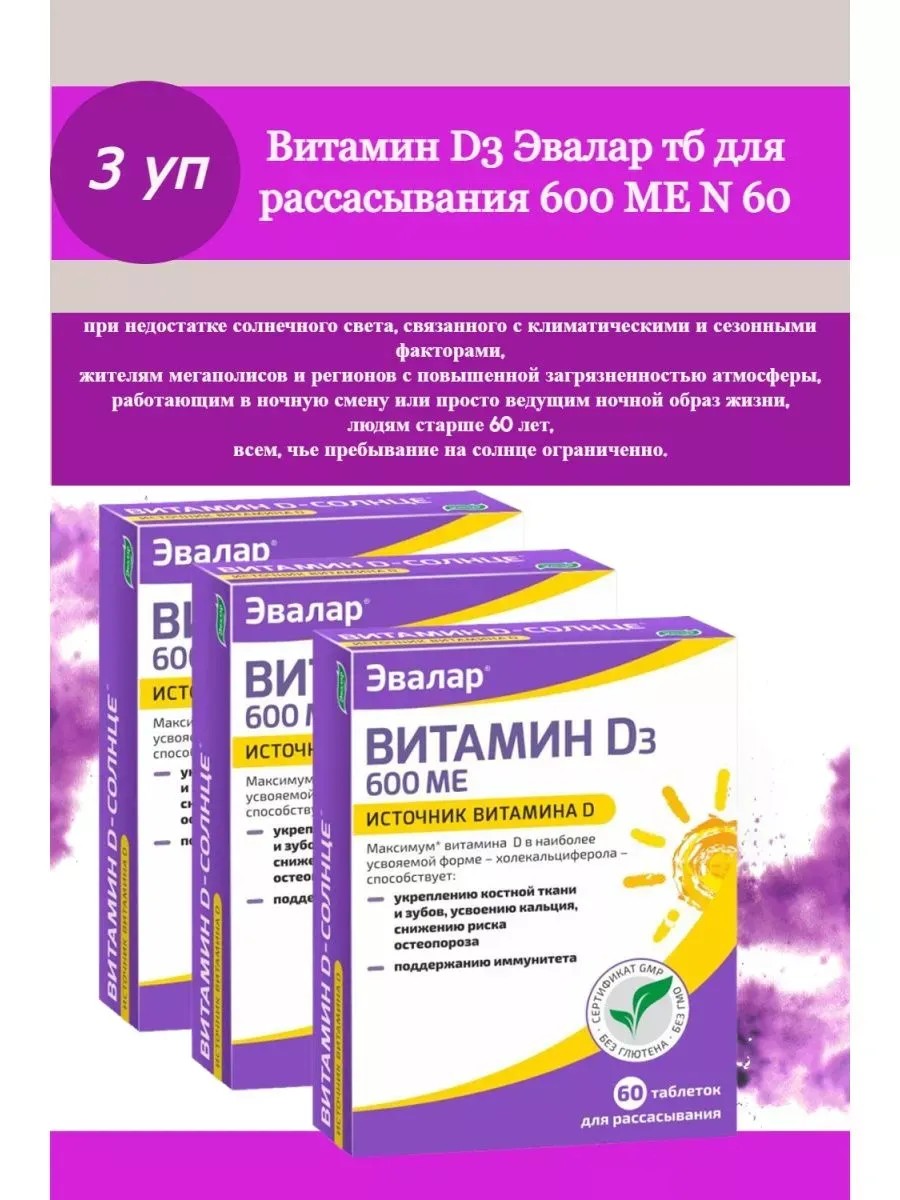 Эвалар Витамин d - солнце 60 таб. 3 уп.