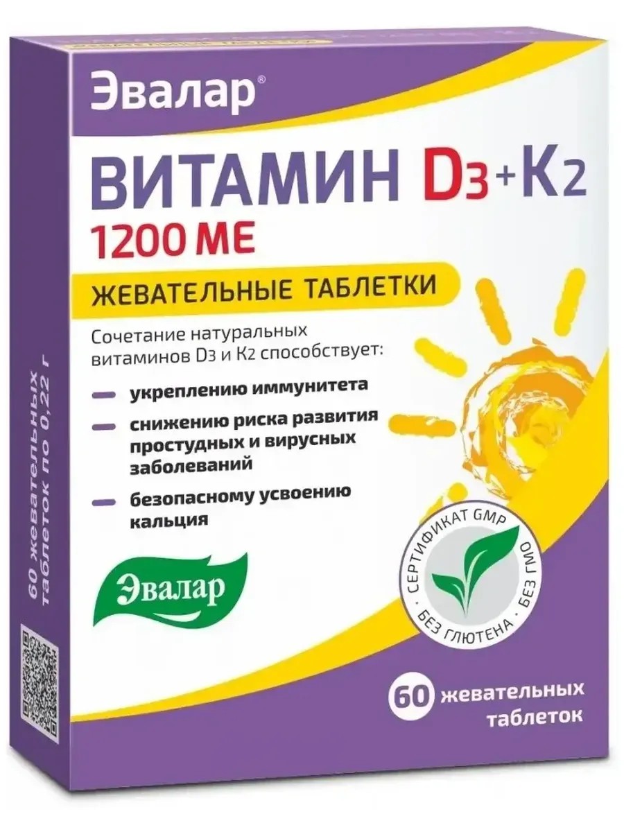 Витамин Д3 1200+К2 Эвалар таб. жев. №60