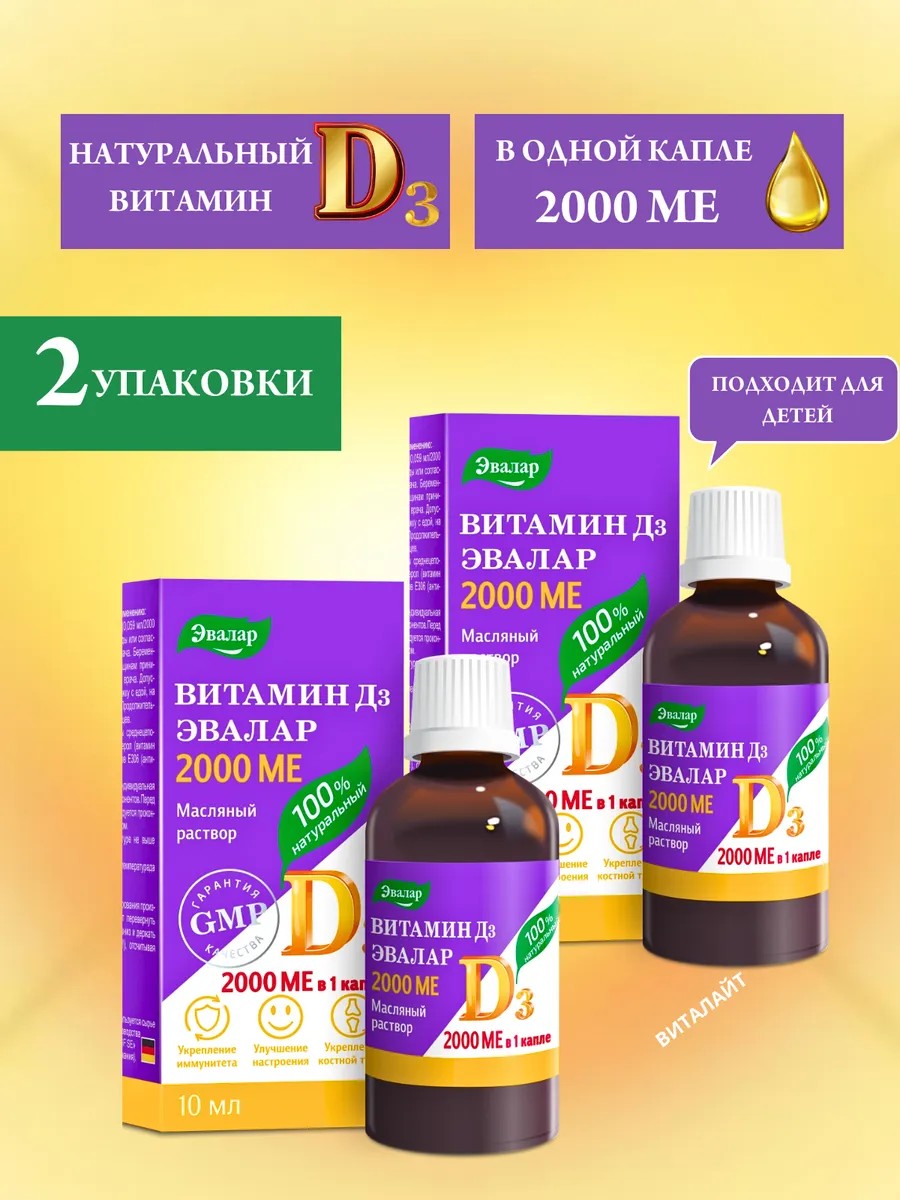 Витамин Д3 2000 МЕ капли от «Эвалар» - это дополнительный источник витамина D3.