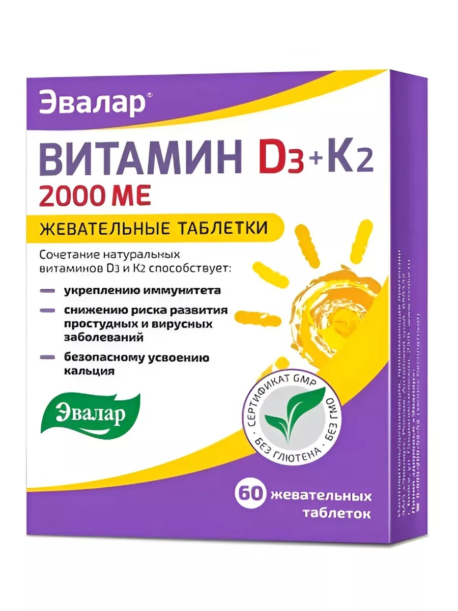 And thanks to the convenient chewable tablet form, Vitamin D3 2000 IU + K2 from Evalar is absorbed even better.