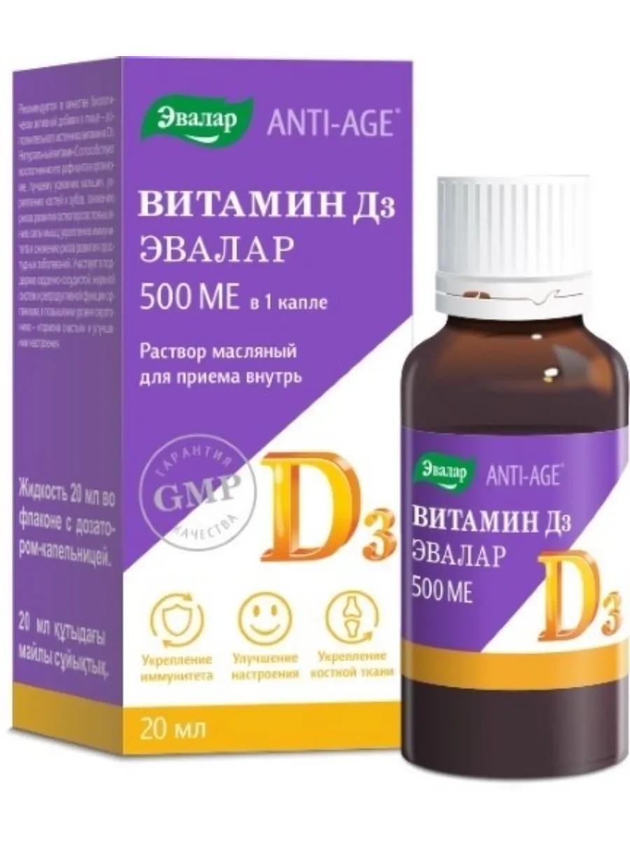 Масляный раствор витамина D3 для приема внутрь 500МЕ в 1 капле.