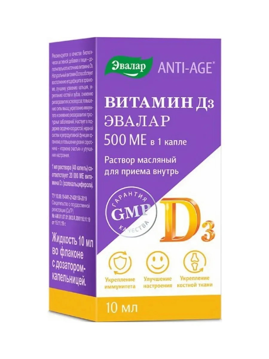 Эвалар Витамин D3 500 МЕ капли для приема внутрь 10 мл