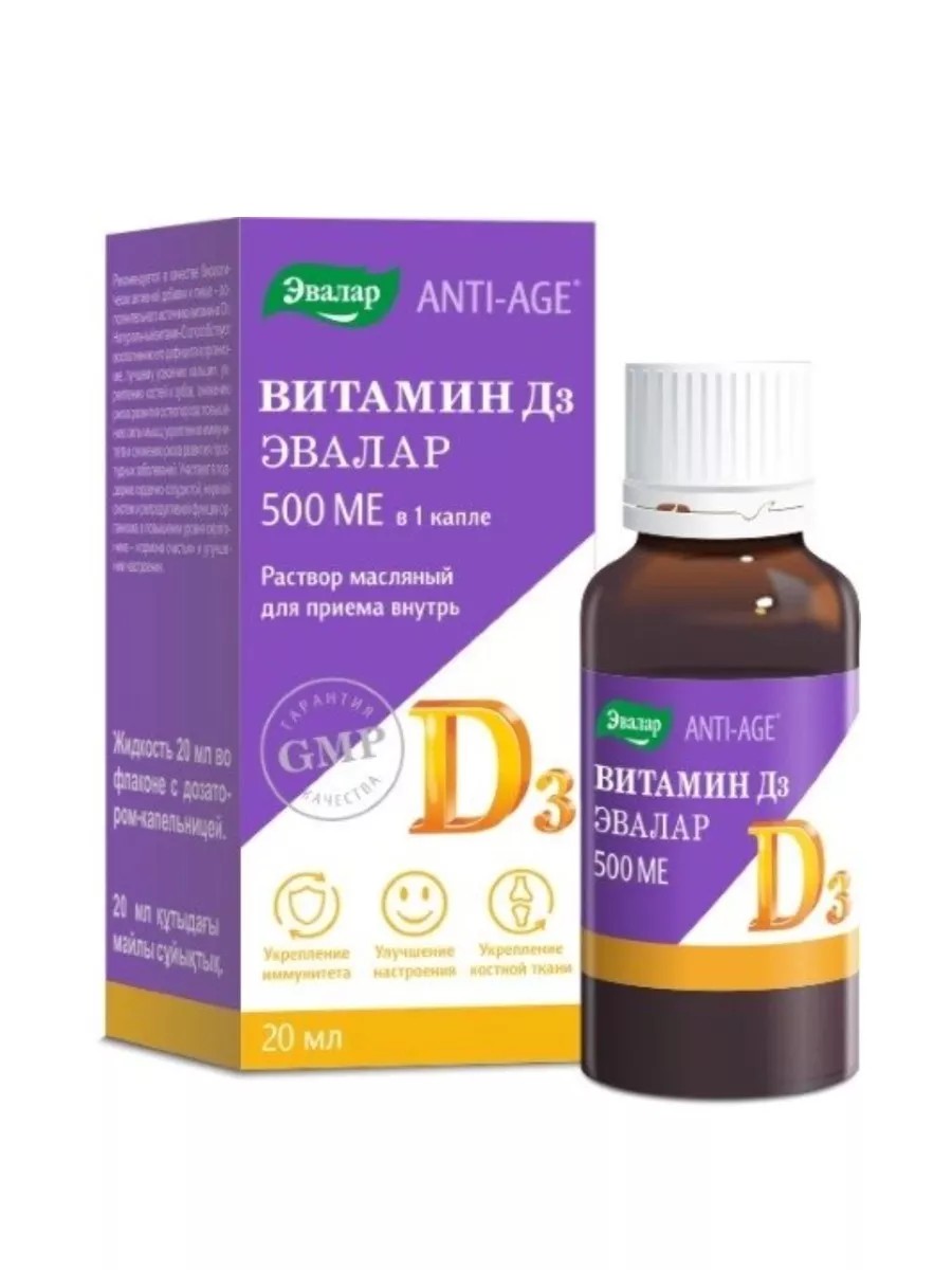 Витамин D3 500 МЕ - это биологически активная добавка к пище , необходимая для поддержания здоровья костей и иммунной системы. Он содержит действующее вещество холекальциферол, который способствует улучшению всасывания кальция и фосфора в кишечнике, а также регулирует обмен кальция в костях и мышцах. Препарат представлен в виде флакона с капельницей, что облегчает его использование. Рекомендуется принимать витамин D3 500 МЕ по рекомендации врача, иначе может произойти переизбыток витамина в организме, который может привести к отрицательным последствиям. Необходимо хранить препарат в недоступном для детей месте при температуре не выше 25°С. Витамин D3 500 МЕ поможет укрепить иммунитет и защитить здоровье костей.