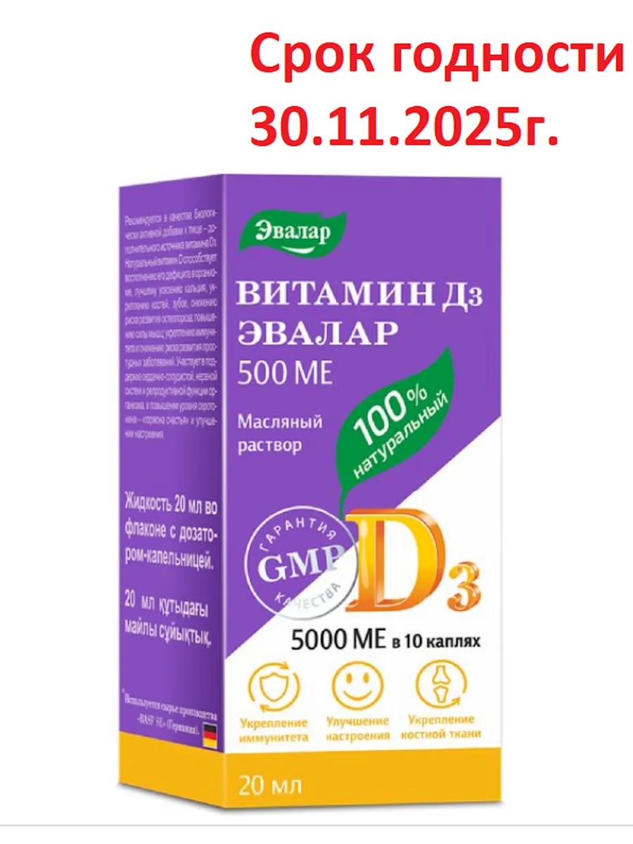 Эвалар Витамин Д3 500 МЕ 20 мл СГ 30.11.2025