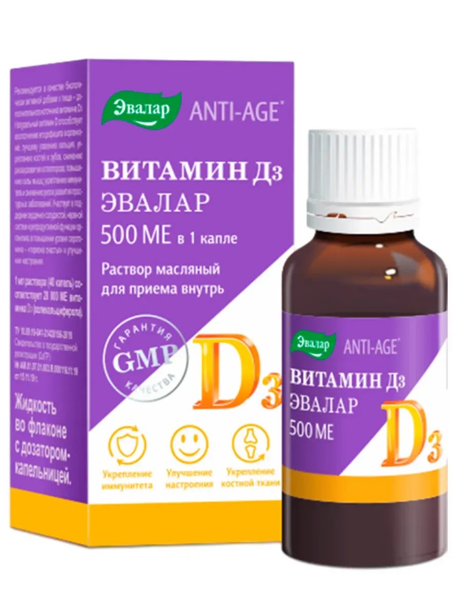 Эвалар Витамин d3 500 МЕ 3уп по 10мл флакон-капельница жидкость