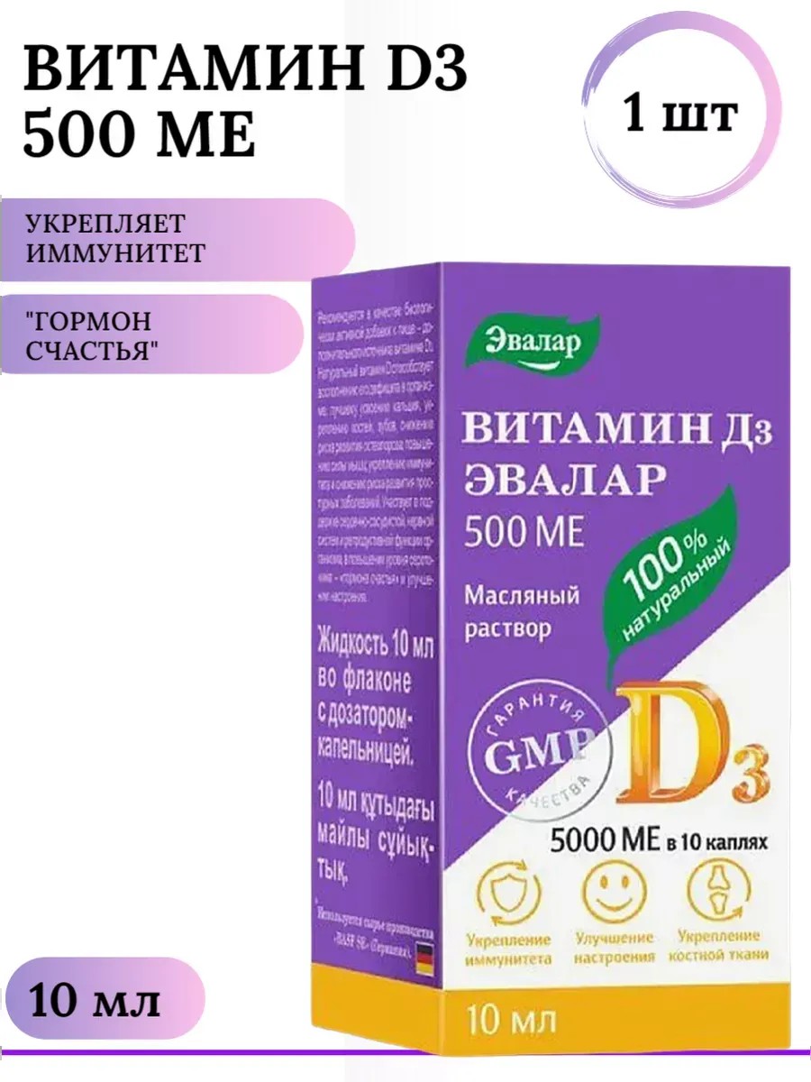 Эвалар Витамин Д3 500 МЕ, масляный раствор 10 мл / 1 шт