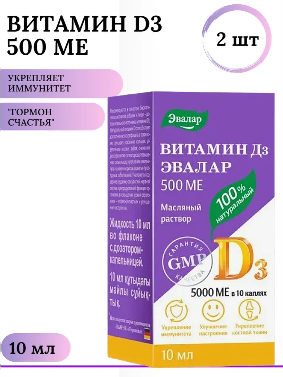 Эвалар Витамин Д3 500 МЕ, масляный раствор 10 мл / 2 шт