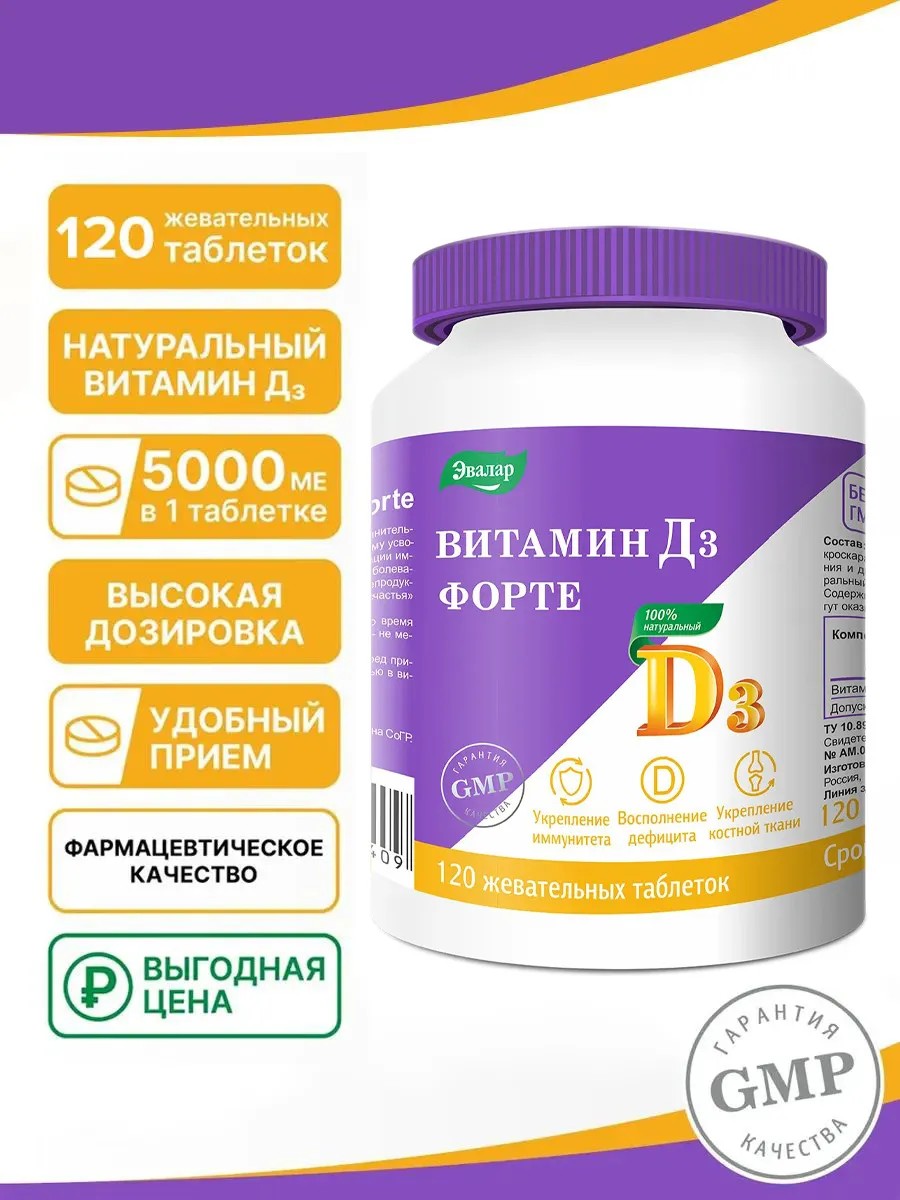 Эвалар Витамин Д3 5000 МЕ форте, 120 таблеток