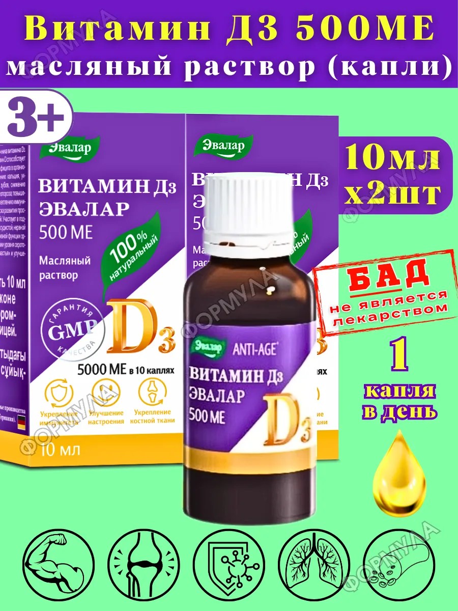| Полное наименование товара | Эвалар Витамин д3 500 МЕ 10 мл флакон-капельница жидкость |