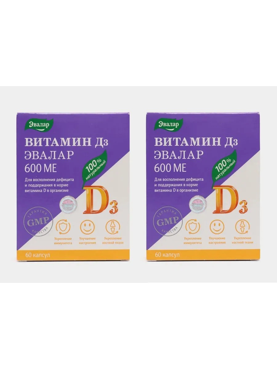 Эвалар Витамин D3 600 МЕ, 60 капсул (0,24г) х 2 уп