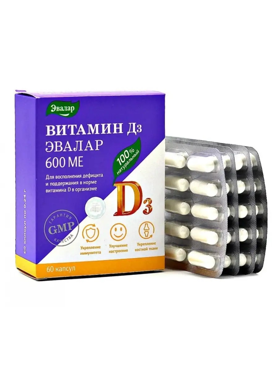 Эвалар Витамин Д3 600 МЕ, 60 капсул