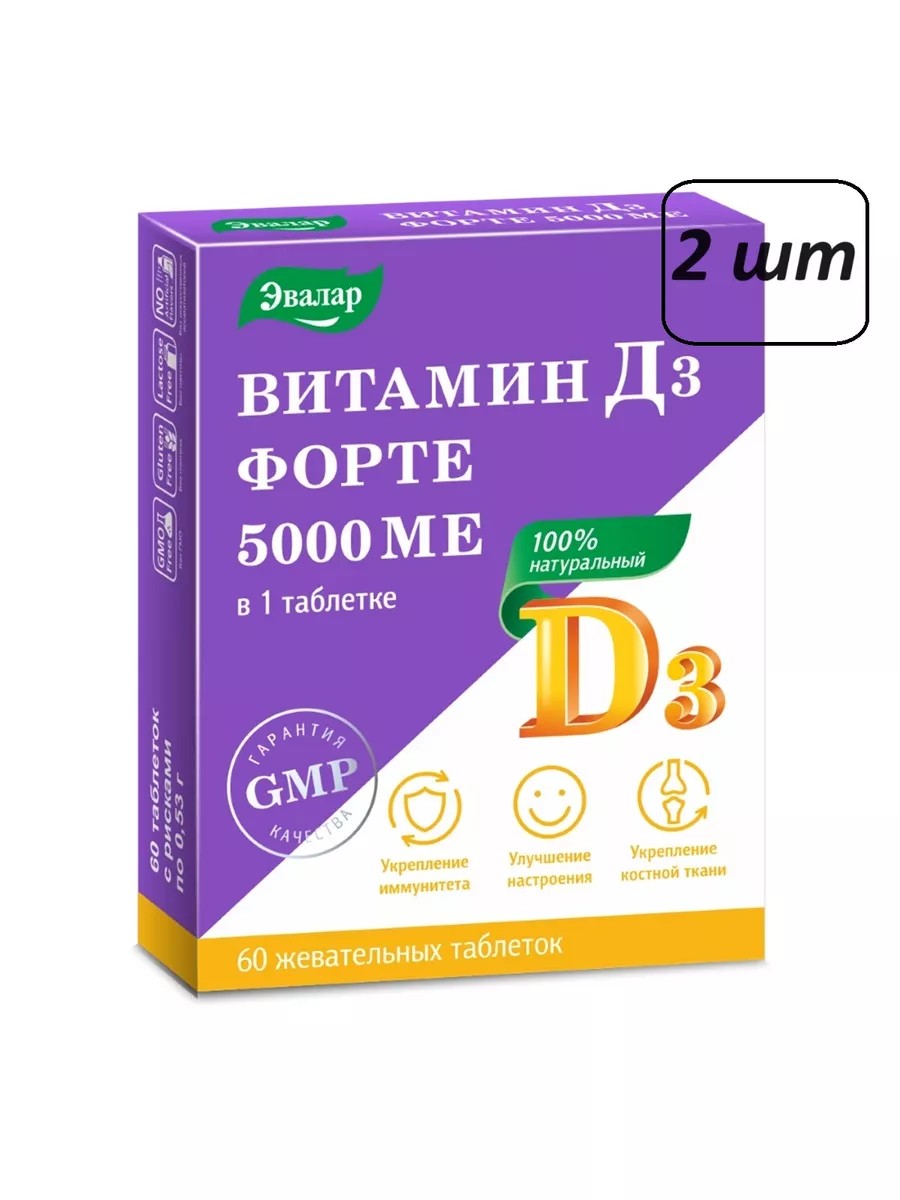 Витамин D3 Форте - это биологически активная добавка к пище , разработанная для повышения уровня витамина D в организме. Он состоит из 60 жевательных таблеток, каждая из которых содержит 125 мкг (5000 МЕ) витамина D3. Этот продукт обеспечивает организм необходимой дозой витамина D3, который является не только важным для поддержания здоровья костей, но и определяет многие другие аспекты здоровья, такие как иммунная система, сердечно-сосудистая функция и многое другое. Благодаря жевательной форме таблеток, они легко и быстро усваиваются организмом, что делает их идеальным выбором. Приобретая Витамин D3 Форте, вы обеспечиваете свой организм необходимой дозой витамина D3, который помогает поддерживать ваше общее здоровье и благополучие.