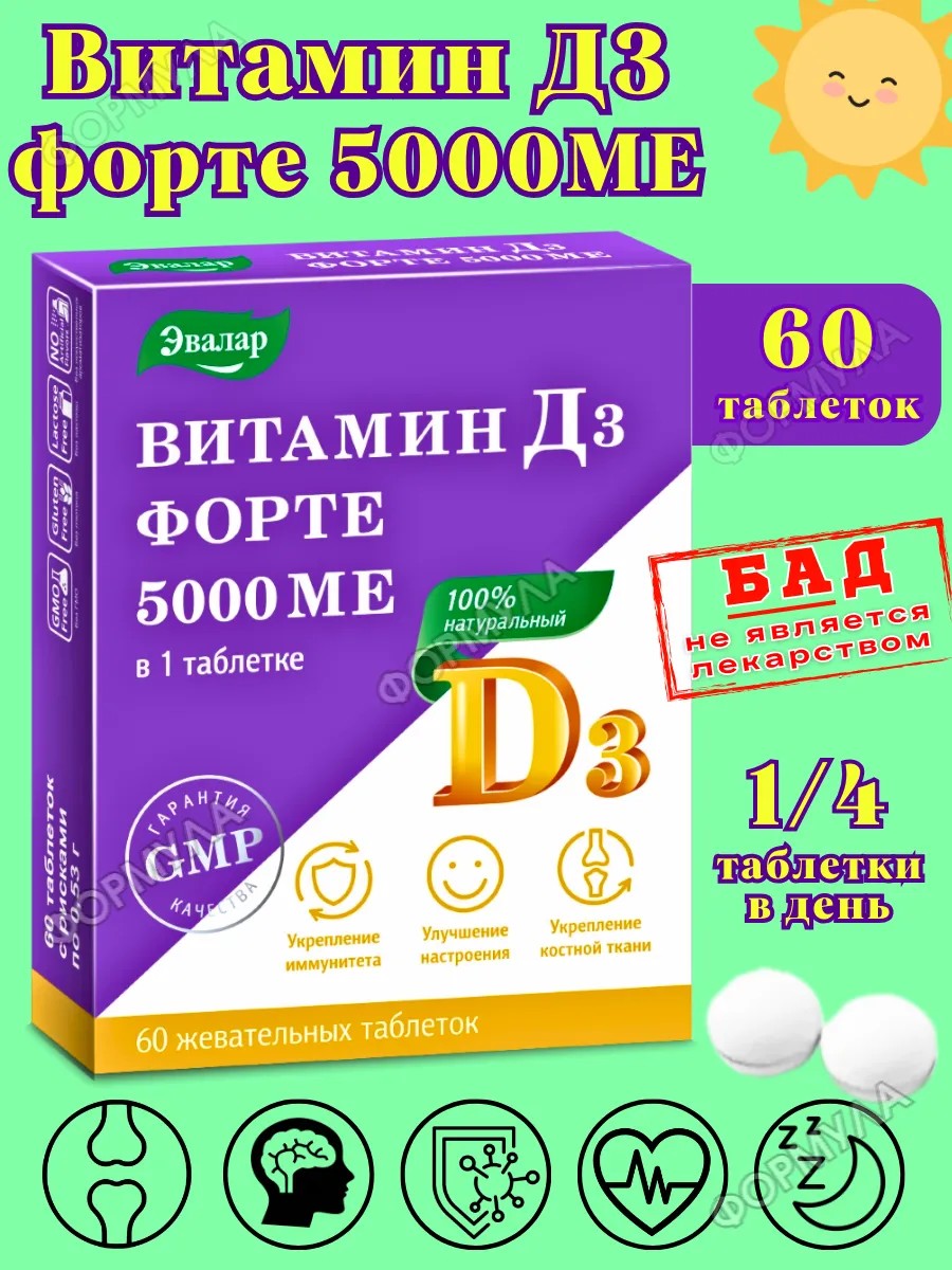 Эвалар Витамин Д3 форте 5000 МЕ для иммунитета 60таб*1уп