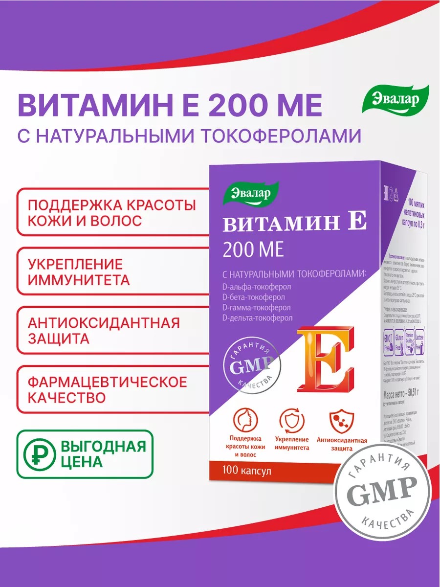 Витамин Е 200 МЕ от «Эвалар» — это натуральный антиоксидант, который поддерживает иммунитет, сохраняет красоту кожи и защищает организм от стресса.