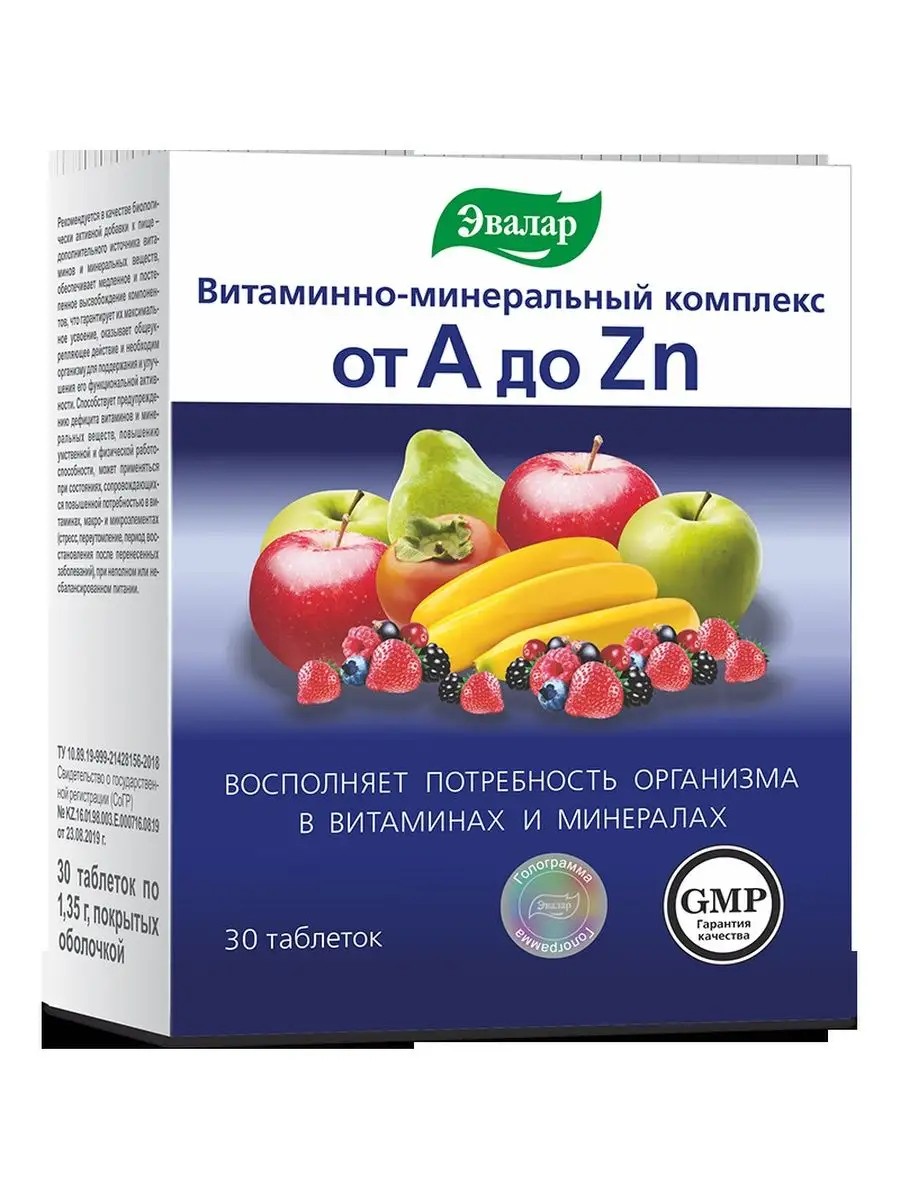 | Комплектация | Витаминно-минеральный комплекс от А до Цинка, таб. №30 по 1,35 г блистер |