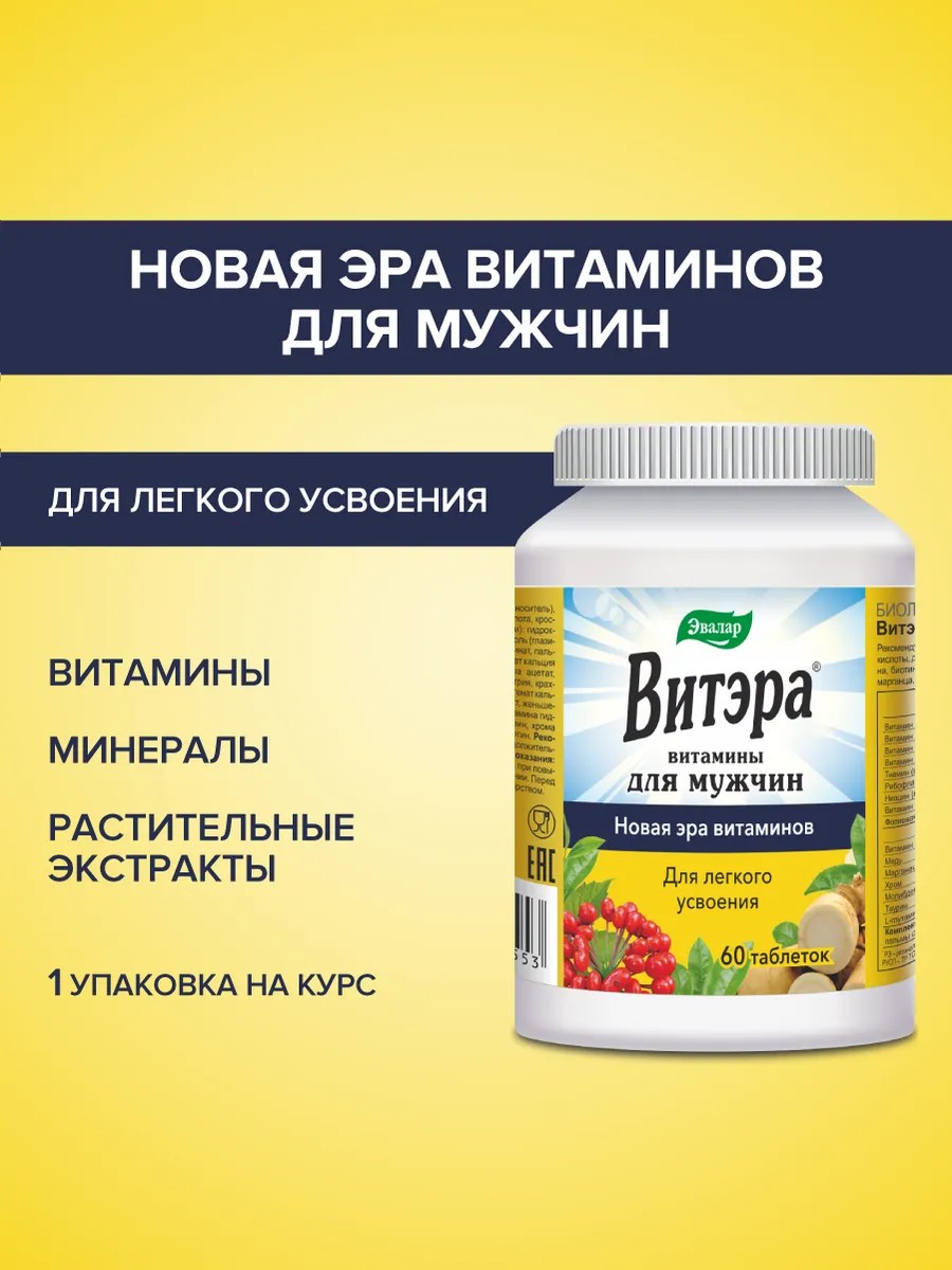 Эвалар Витамины для мужчин, Витэра 60 таблеток