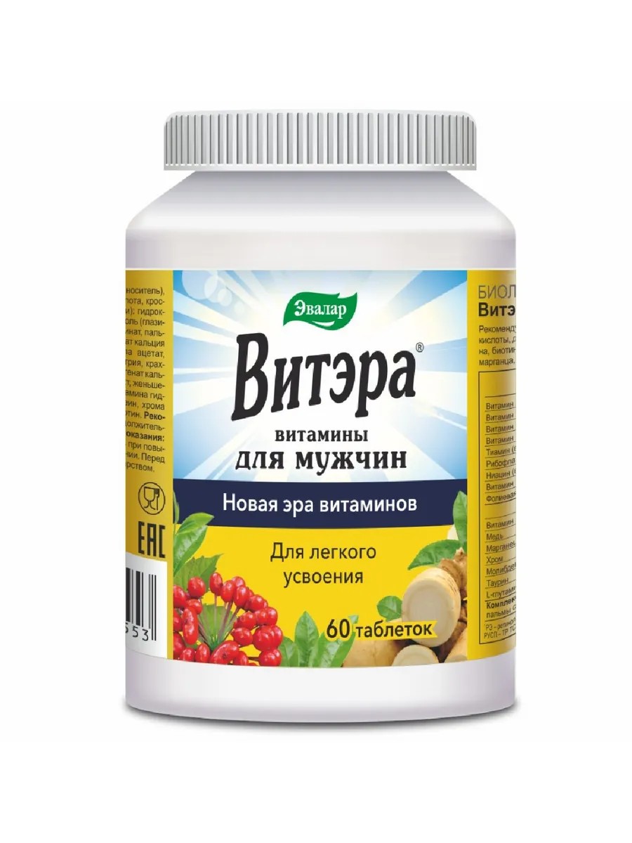 Эвалар Витэра витамины для мужчин 60 табл. по 1,3 г.