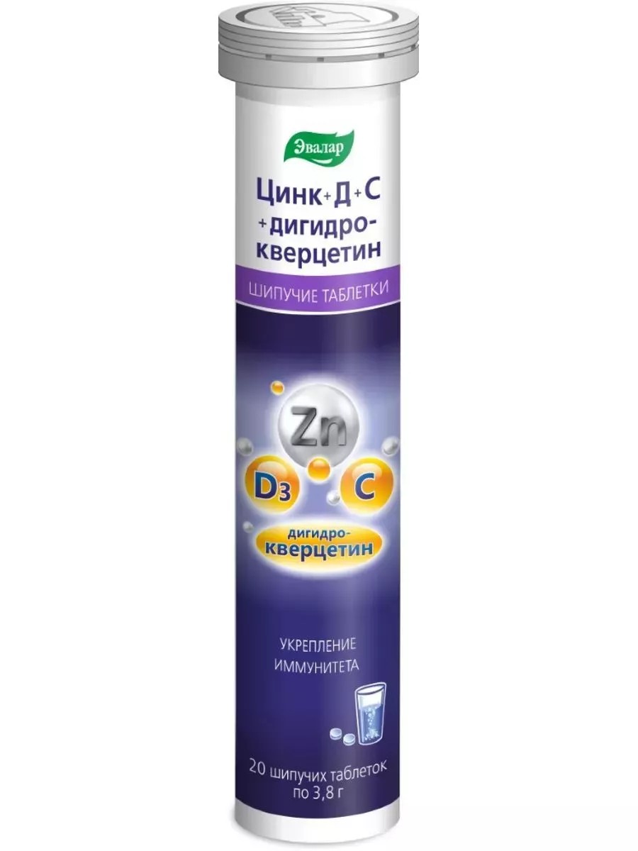 ЦИНК+Д+С+ДИГИДРОКВЕРЦЕТИН N20 ТАБЛ ШИП ПО 3,8ГЦИНК+Д3+С+ДИГИДРОКВЕРЦЕТИН - Биологически активная добавка (БАД) к пище - укрепления иммунитета в период эпидемий и гриппа.Биологически активная добавка (БАД) к пищеЦИНК+Д3+С+ДИГИДРОКВЕРЦЕТИН - Биологически активная добавка (БАД) к пище - укрепления иммунитета в период эпидемий и гриппа.Активное вещество:Цинк, Витамин D3, Витамин С, кверцетинДействие:Способствует укреплению иммунитета, восстановлению защитных сил организма в период сезонных эпидемий гриппа и простуды.Усовершенствованная формула для усиления иммунной поддержки, снижения риска простудных и вирусных заболеваний.Витамин D и кверцетин способствуют улучшению функционального состояния бронхов и легких, показателей внешнего дыхания, укреплению стенок кровеносных сосудов и капилляров.