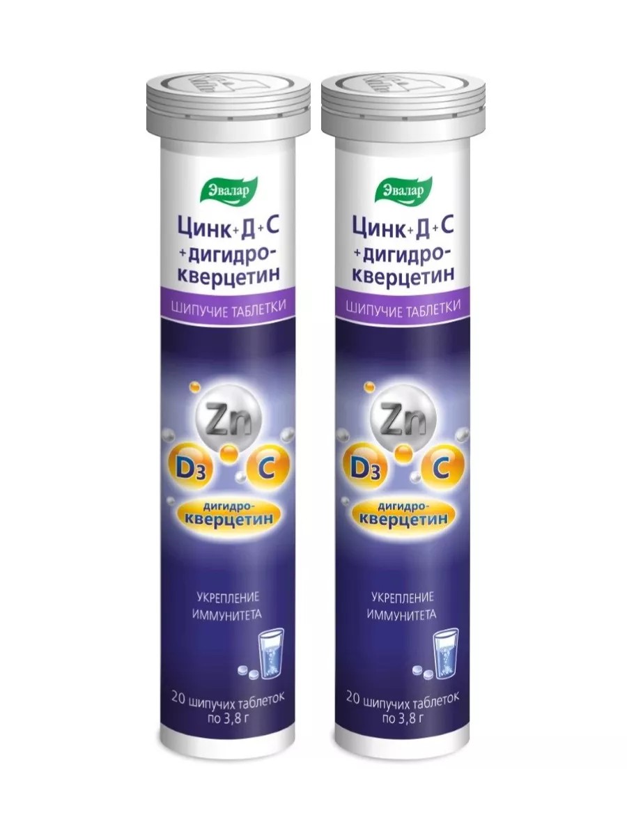 Эвалар Цинк+д+с+дигидрокверцетин 20 шт. таблетки шипучие/2уп