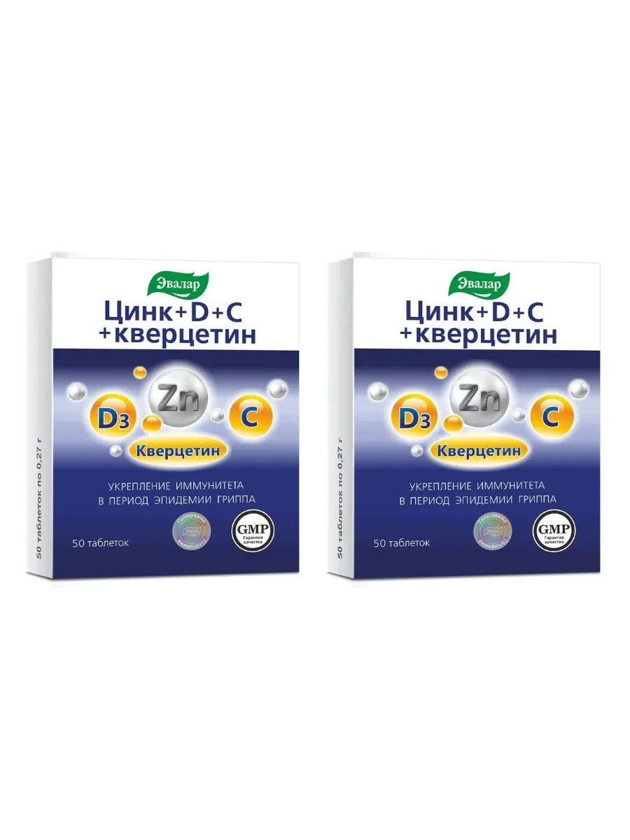 Эвалар Цинк+D+С+Кверцетин для иммунитета, 50 таб (0,27г) х 2 уп