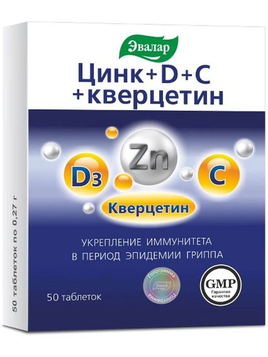 Эвалар Цинк+d+с+кверцетин N50 Табл По 0,27г