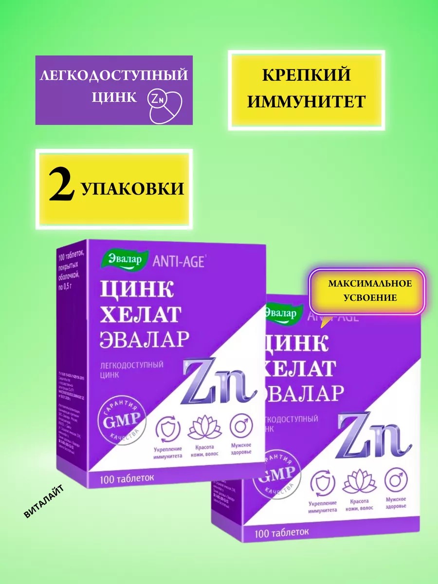 Эвалар Цинк хелат, таблетки №100 по 0,5 гр-2уп