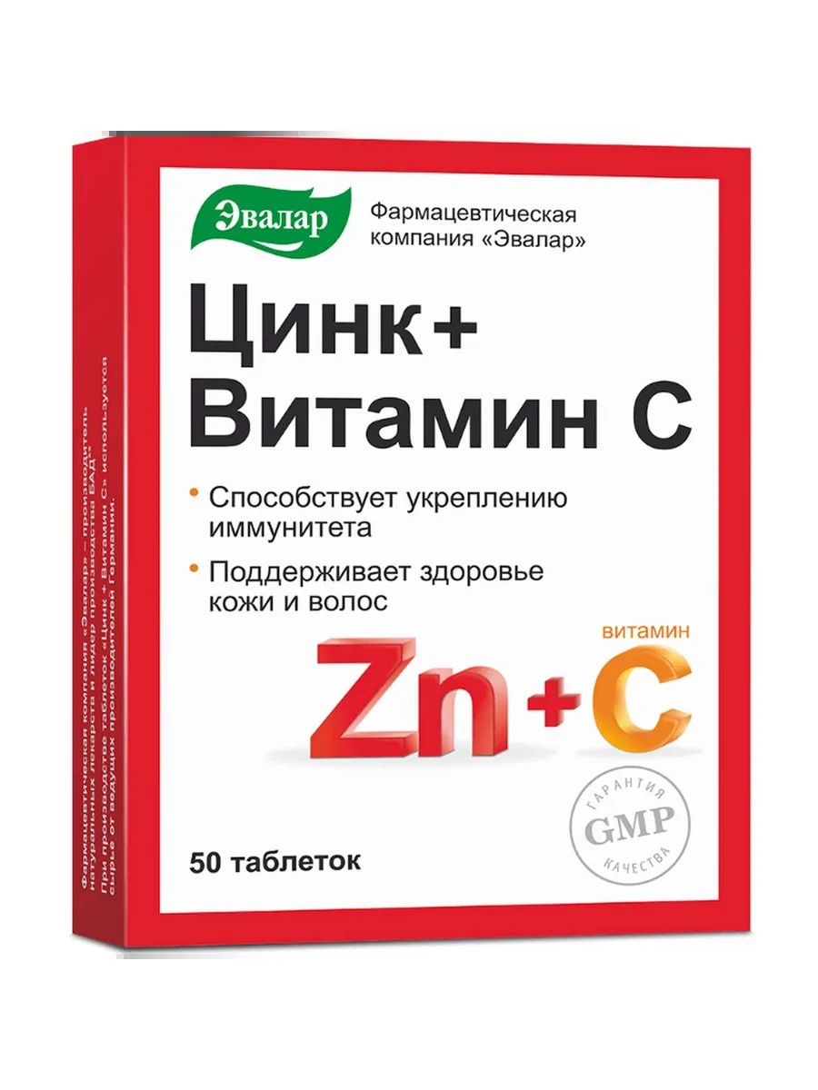 Цинк+Витамин С Эвалар таблетки 0,27г 50шт -1 уп.