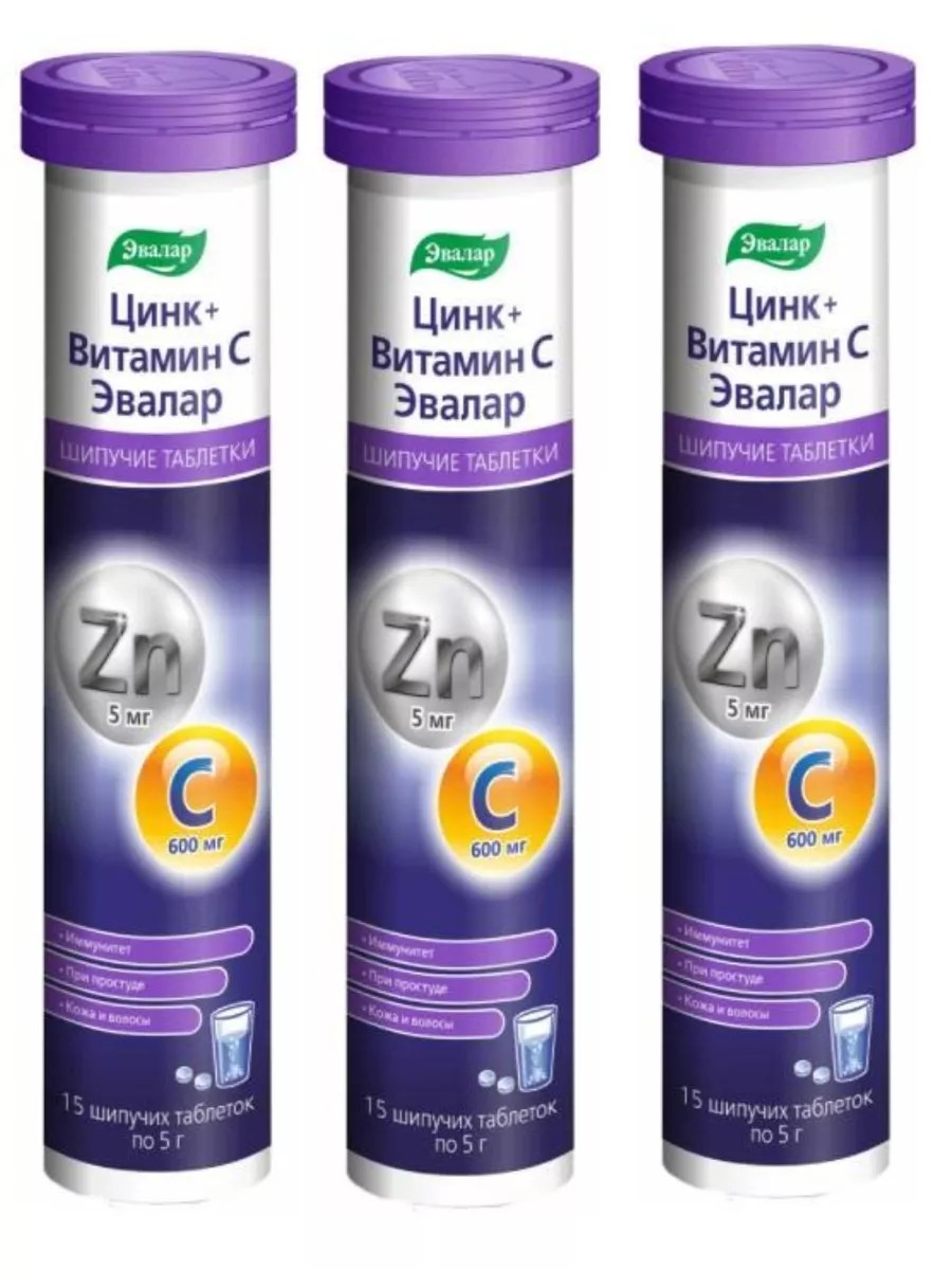 Эвалар Цинк+Витамин С шипучие таблетки 15 шт/3уп