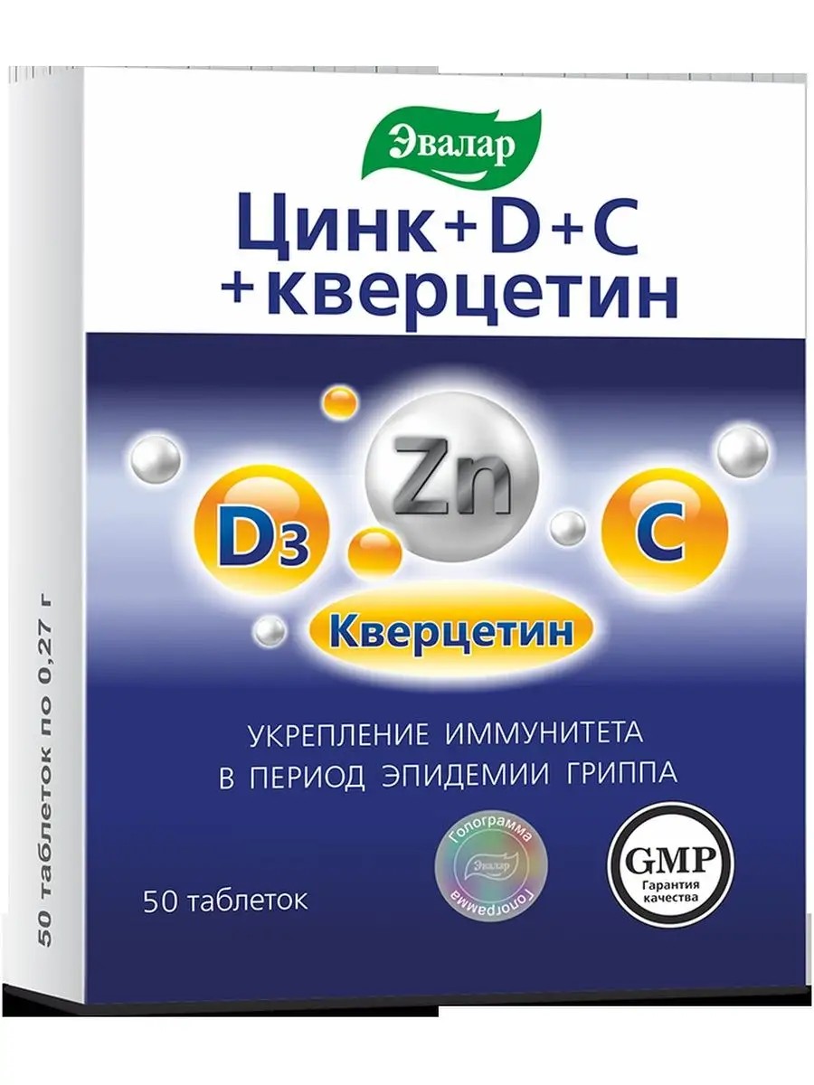 | Комплектация | Цинк+D+С+кверцетин, таблетки №50 по 0,27г |