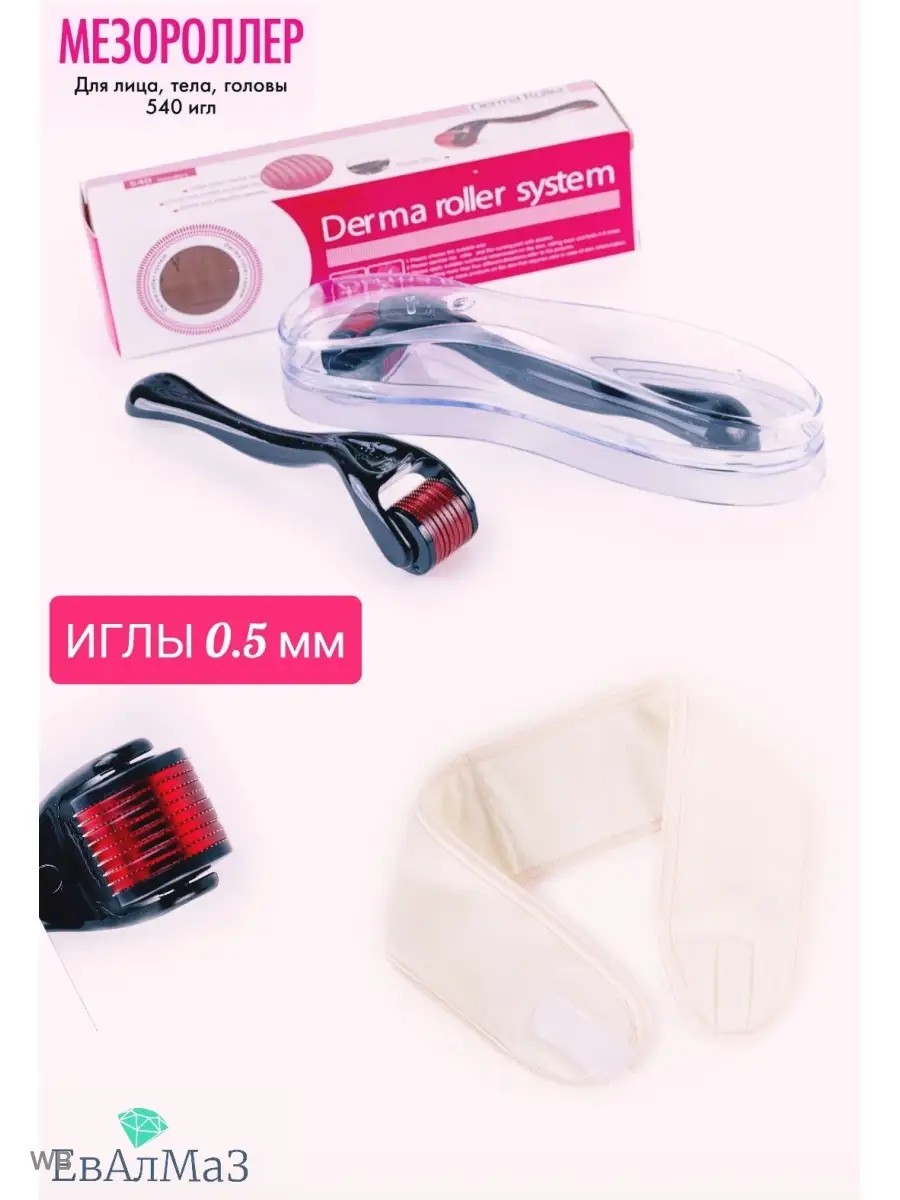 Мезороллер (дермароллер) для бороды и лица с длиной игры 0.5 мм. Мезороллеры с длиной игл 0.5 - 1.0 мм используются для лица и области декольте. Роллер обеспечивает лучшее усвоение других продуктов, которые наносятся на кожу, поэтому кремы и сыворотки работают гораздо более эффективно. Мезороллер стимулирует восстановительные процессы: улучшает выработку собственного коллагена и эластина, уменьшает глубокие шрамы и следы угревой сыпи, подтягивает овал лица. Мезороллер, который содержит 540 игл является практически универсальным, подходит для работы по лицу, волосистой части головы, по окологлазничной области, области декольте. Уменьшаются мелкие морщины, кожа свежеет и сияет. Но не делайте процедуру слишком часто, коже надо успевать восстановиться. Если ваша кожа чувствительная, используйте роллер более деликатно, уменьшая давление. Результат достигается курсами по 10-15 процедур 2-3 раза в неделю. мезороллер для бороды помогает пробуждению спящих волосяных луковиц. Борется с растяжками, избавляет от пигментных пятен, устраняет целлюлит. Аппарат для коррекции фигуры способствует улучшению кровообращения волосистой части головы, стимулирует рост новых волос, бороды. Роликовый массажер для лица удобно брать с собой в дальние поездки. Аппаратная косметология для лица у вас дома. Перед использованием иголочки дермароллера необходимо продезинфицировать в спиртовом растворе или раствором мирамистина .ПРОТИВОПОКАЗАНИЯ к применению дермароллера: рубцы, любые воспаления на коже, беременность, псориаз и т.п В комплекте идет коробка, пластиковый чехол в котором находится мезороллер + ПОДАРОК повязка для головы, чтобы более удобно было пользоваться дермароллером!!!