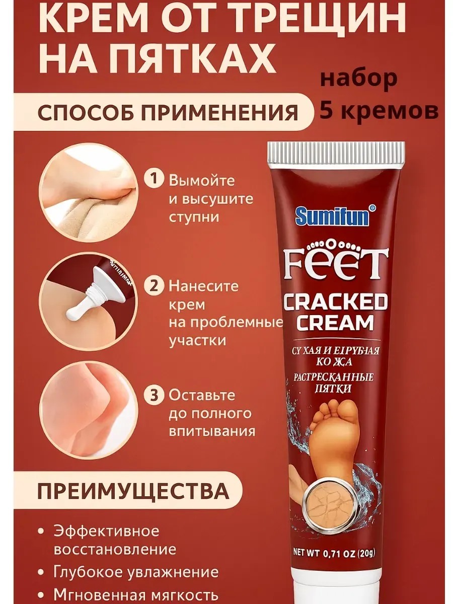 | Комплектация | Бальзам для ног от трещин и сухости; 5шт |