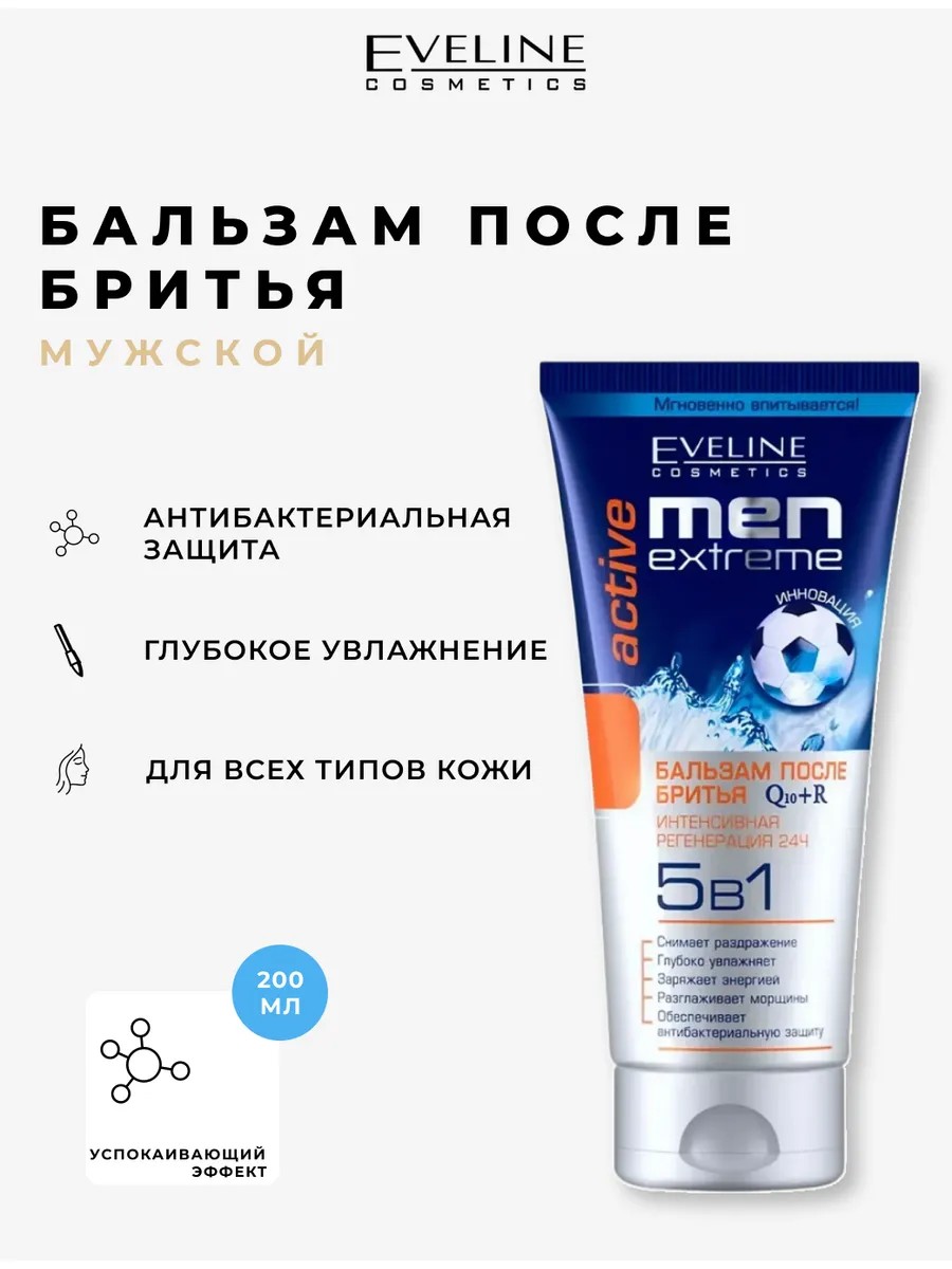 EVELINE Бальзам после бритья MEN EXTREME Q10+R Active 5в1, 200 мл