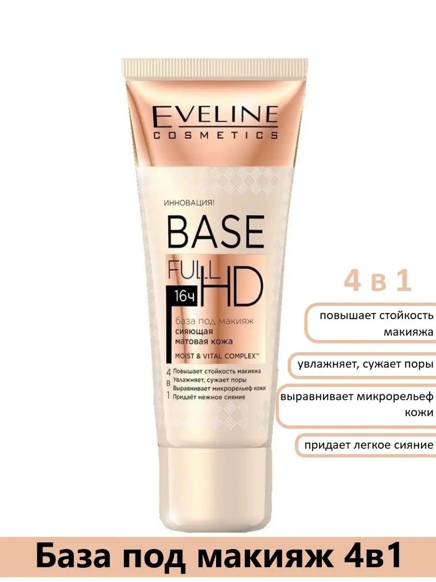 EVELINE BASE FULL HD Сияющая матовая кожа 4в1 база под макияж