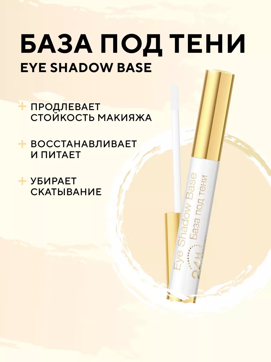 База под тени увеличивает интенсивность цвета теней для век, продлевает стойкость макияжа до 24 часов, а также предупреждает скатывание и осыпание. Мультифункциональная рецептура базы содержит питательные активные компоненты (витамины A,E и F, гиалуроновая кислота, экстракт шелка, экстракт очанки), которые гарантируют глазам необходимое увлажнение, разглаживание морщин, продолжительное чувство свежести, защиту от высушивания и раздражения на протяжении всего дня. Умная формула распознает и восстанавливает микротрещинки в структуре века, а также защищает в течение дня от вредных факторов, которые инициируют возникновение морщин.