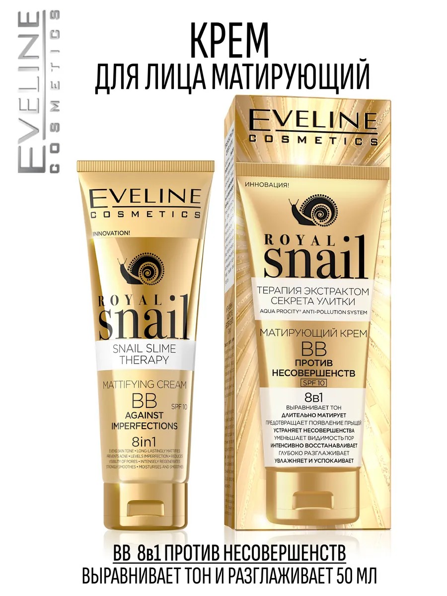 EVELINE ВВ крем матирующий против несовершенств 8в1 Royal Snail 50мл