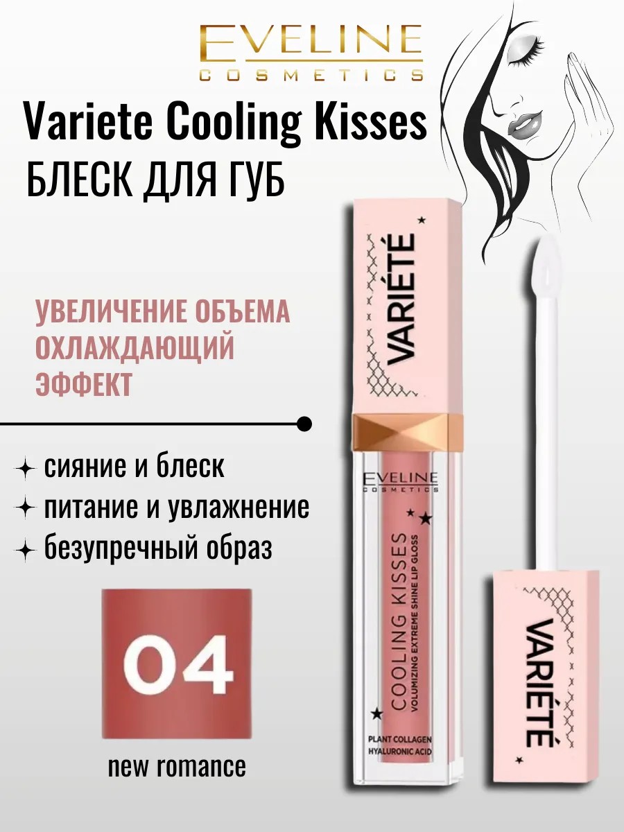 Variete Cooling Kisses Lip Gloss in shade 04 from EVELINE is an innovative lip plumping product with a pleasant cooling effect. This gloss is created using cutting-edge formulas, ensuring high effectiveness and comfortable application.